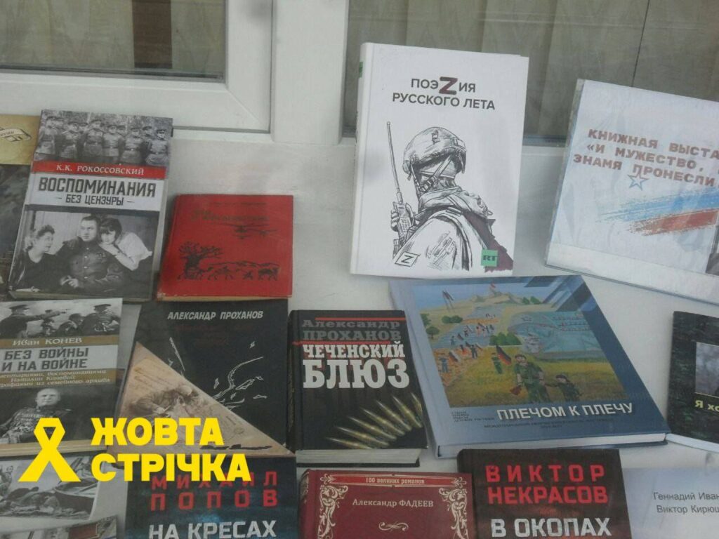 «До істеричного сміху доводить мешканців «актуальна» для місцевої бібліотеки книга «Чеченский блюз». Як бачите, багато також і іншої неякісної псевдоісторичної пропагандистської літератури: «ПоZыVной Победа», «Герои СВО» тощо», — йдеться у повідомленні «Жовтої Стрічки».