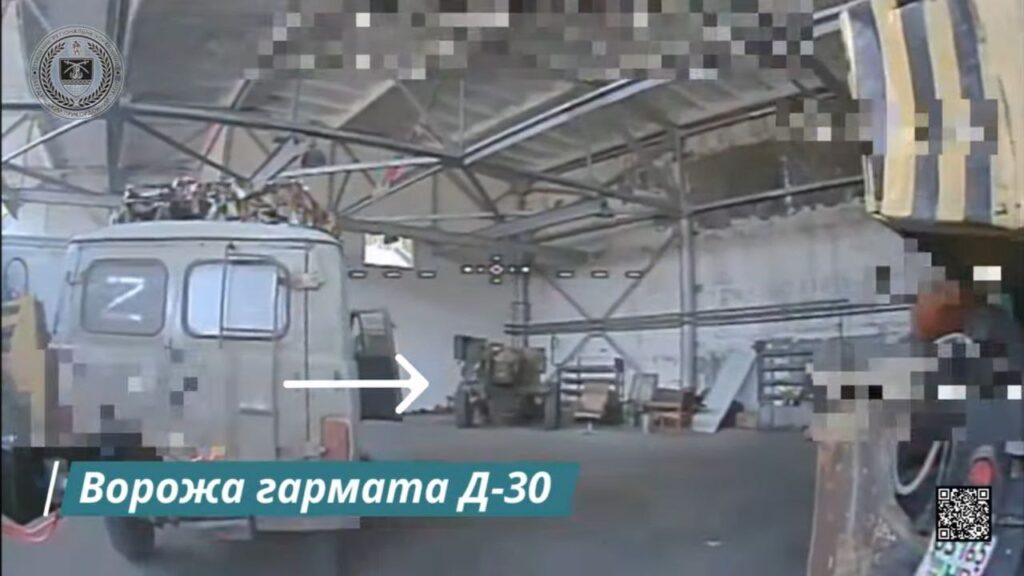 Прикордонники-аеророзвідники виявили в одній із промислових будівель російську техніку. Найбільше увагу пілотів привернула гармата Д-30.
