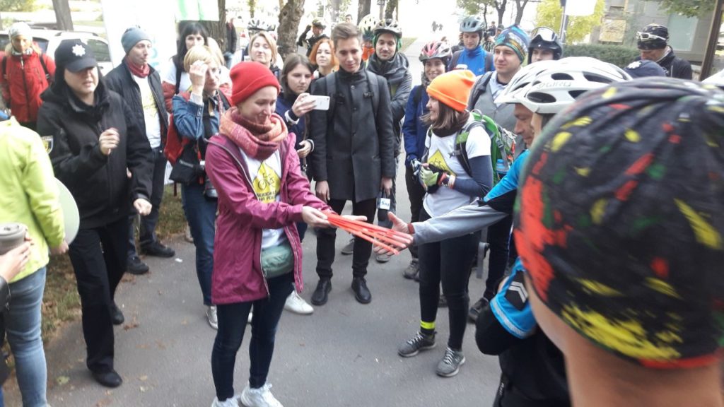 В кінці зустрічі представники громадської організації вручили поліцейським велопатруля світловідбиваючі стрічки для більш безпечного пересування в нічний час доби.