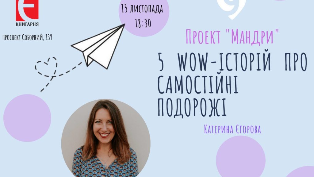 Цієї п’ятниці о 18:30 в одній з книгарень Запоріжжя відбудеться зустріч з мандрівницею Катериною Єгоровою «5 wow-історій про самостійні подорожі».