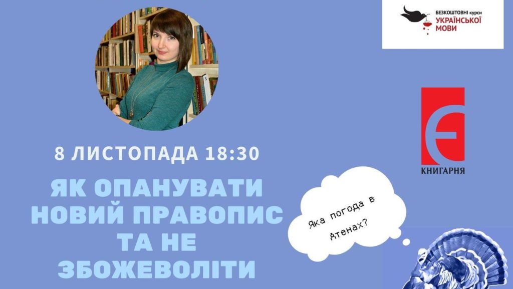 Книгарня «Є» та «Безкоштовні курси української мови у Запоріжжі» запрошують на лекцію Олени Ольшанської «Як опанувати новий правопис та не збожеволіти» до Дня української писемності та мови, яка відбудеться 8 листопада.