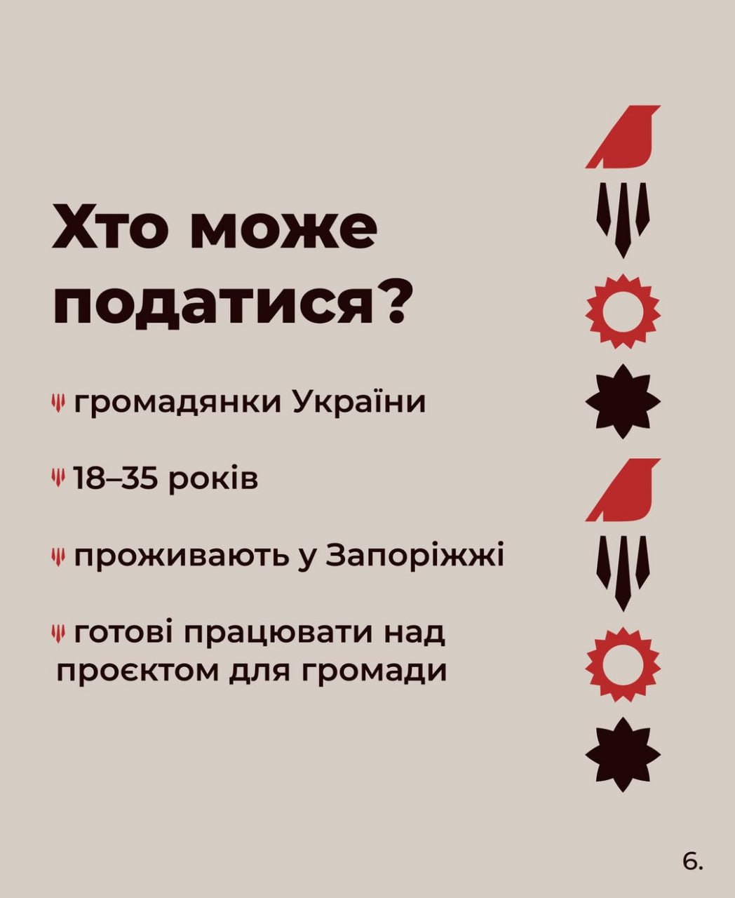 Цей проєкт створений для молодих жінок Запоріжжя, які хочуть розвиватися професійно, впливати на життя міста та бачать себе в публічному секторі — сьогодні або в майбутньому.