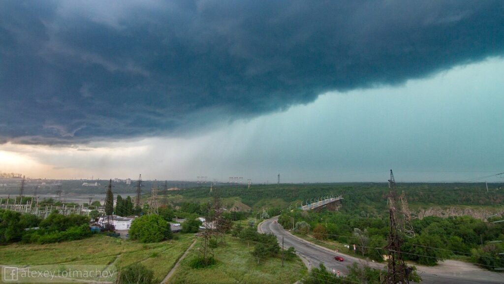 Фотограф зробив фото перед початком вчорашньої стихії, яка накрила Запоріжжя. Нагадаємо, що негода залишила деякі райони міста без електрики та інтернету.