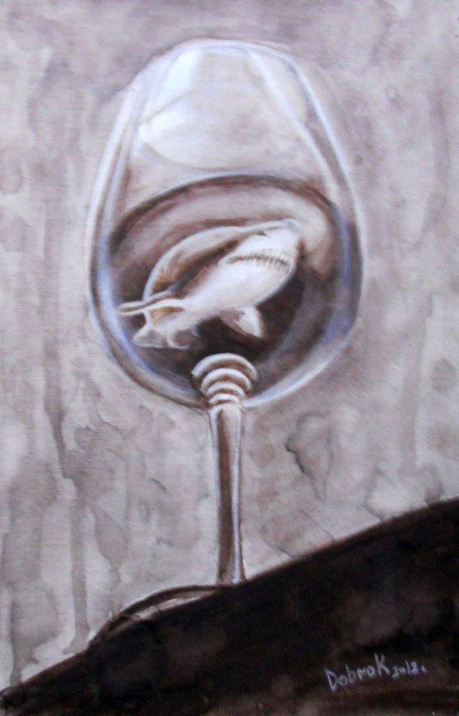 Ксения рассказывает, что для работы с вином нужно невероятное терпение, поскольку рисовать вином нужно аккуратно и точно, и оно долго подсыхает. К тому же, обычный холст для алкогольной палитры не подходит, поэтому нужно использовать специальную бумагу.