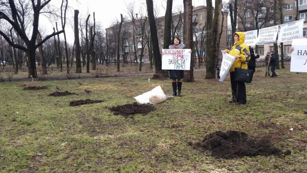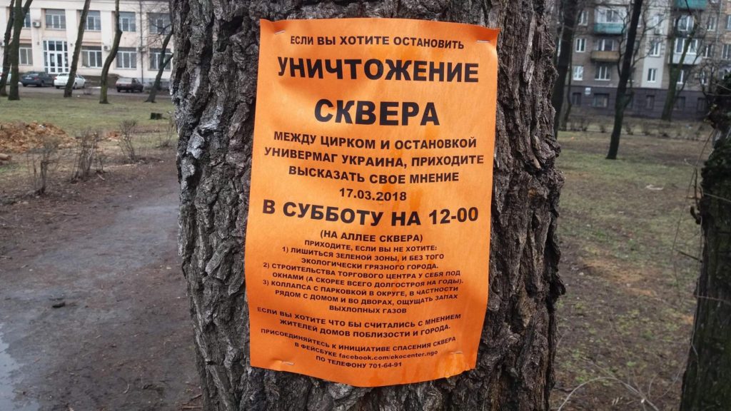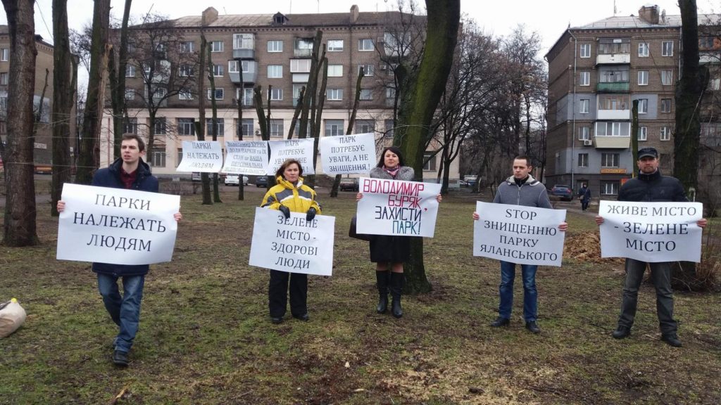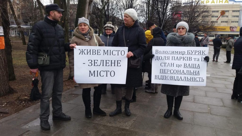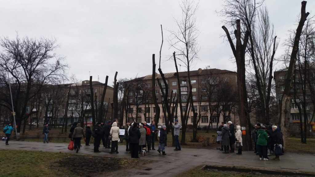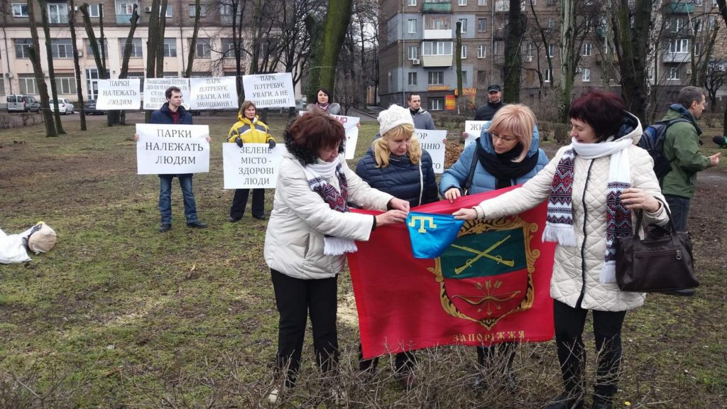 На митинге несколько десятков активистов с плакатами выступили за сохранение сквера Яланского и зеленых насаждений. Для этого запорожцы прихватили с собой саженцы деревьев. И после того, как в феврале на этой территории провели обрезку деревьев, активисты намерены засадить новые липы, пихту и даже какие-то фруктовые деревья, таким образом, препятствуя уничтожению и спилу старых насаждений.