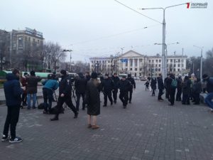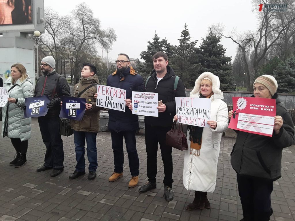Сегодня, 5 января, на бульваре Шевченко состоялась акция протеста против гомофобного номера студии “Квартал 95”. Неподалеку от ДС “Днепроспецсталь” на мини-митинг собрались двенадцать общественных активистов.