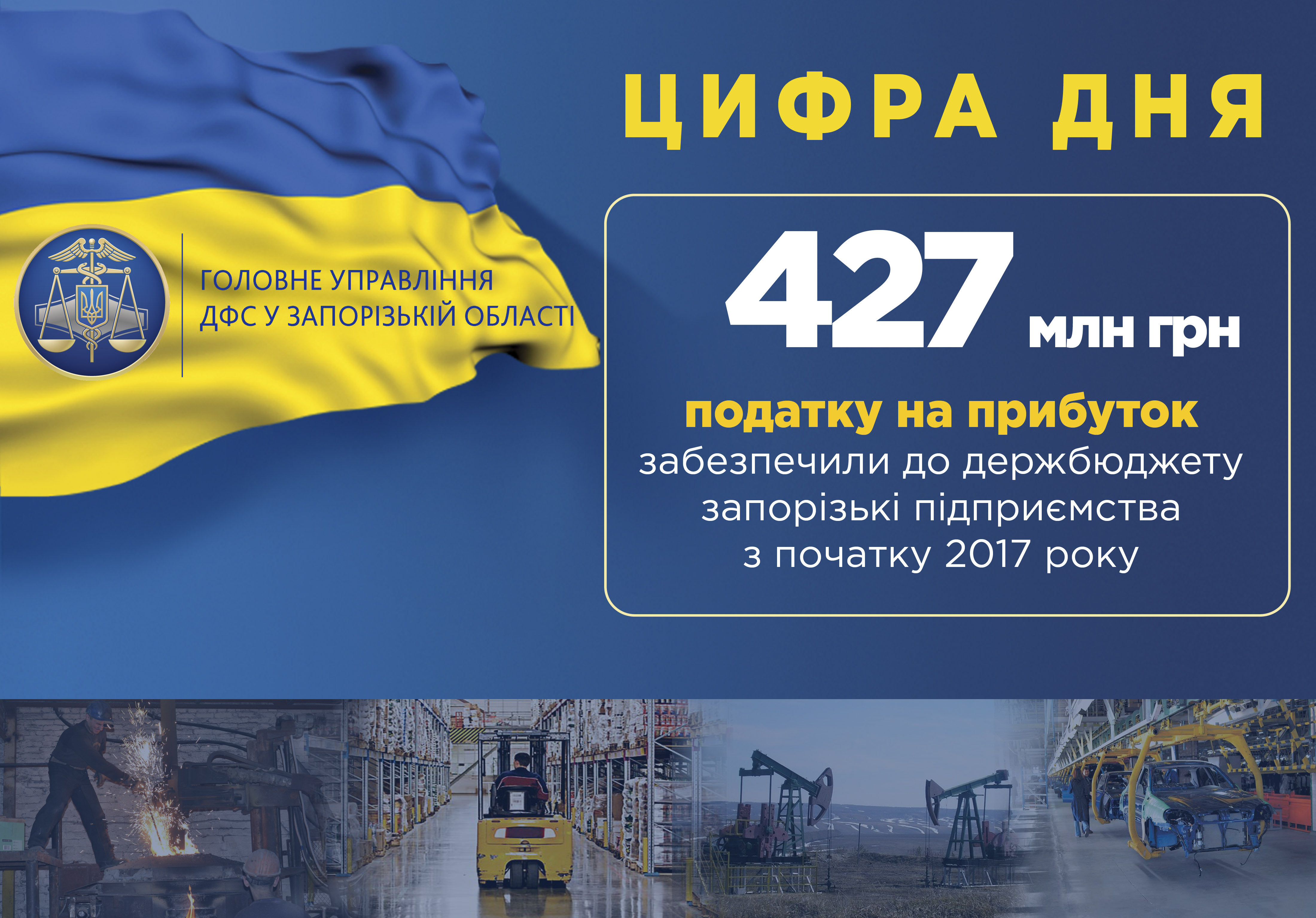 Предприятия Запорожского региона с начала года пополнили госбюджет на 427 миллионов гривен налога на прибыль (без показателей крупных предприятий, зарегистрированных в Запорожском управлении Офиса крупных налогоплательщиков ГФС).