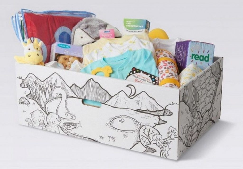 В «пакетах малыша» есть коробка-колыбель с необходимыми вещами: одеялом, матрасом, полотенцем, пеленками, подгузниками и игрушками-погремушками, средствами гигиены, всего 25 наименований.