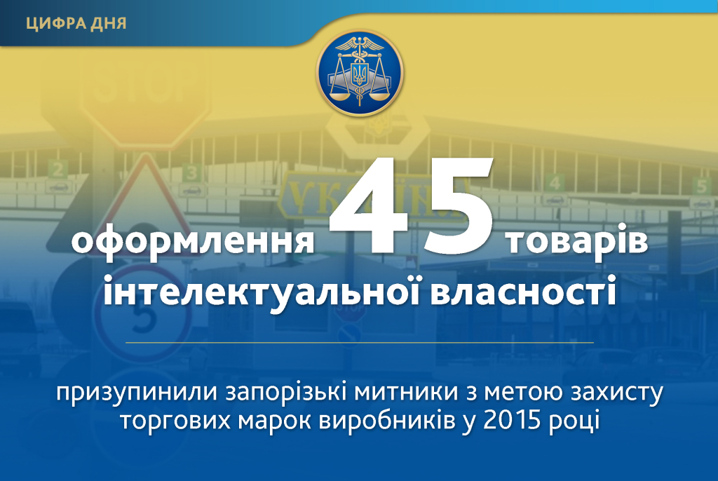 В течение прошлого года сотрудниками Запорожской таможни ГФС приостановлено таможенное оформление 45 товаров, которые внесены в таможенный реестр объектов права интеллектуальной собственности. Это в 4 раза больше, чем за аналогичный период 2014 года.