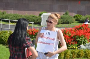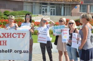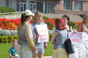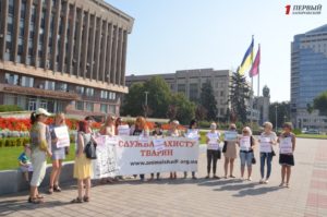 Сегодня участники акции обратились с требованием в Шевченковскую прокуратуру передать в суд уголовные дела против подозреваемого в убийстве собак (догхантера) Алексея Святогора по ч. 3 ст. 300 Уголовного кодекса Украины («Пропаганда культа насилия и жестокости»).