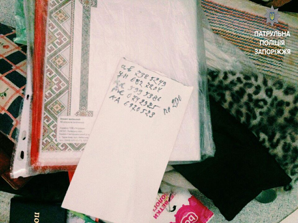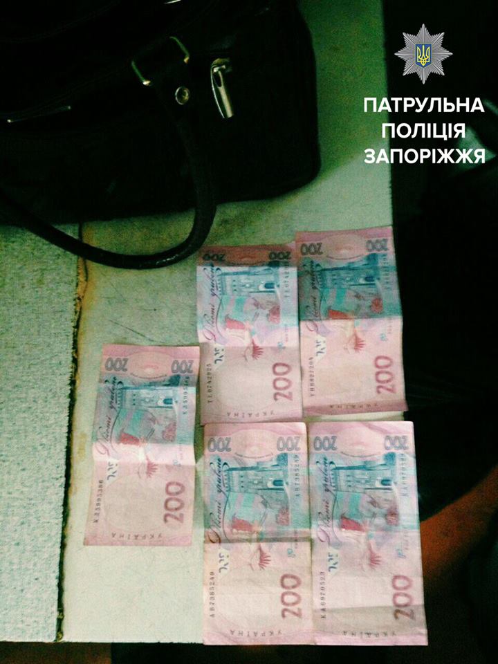 На место происшествия патрульные вызвали следственно-оперативную группу. Следователи в сумочке женщины нашли пять купюр в номинале двести гривен, серия и номера которых совпадали с записями дедушки. Подозреваемую доставили в Днепровский райотдел, сообщает пресс-служба запорожской патрульной полиции.