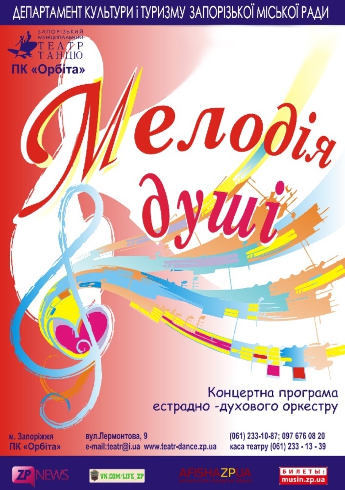 Ко Дню влюбленных 15 февраля в Запорожском муниципальном театре танца состоится концертная программа эстрадно-духового оркестра «Мелодия души».