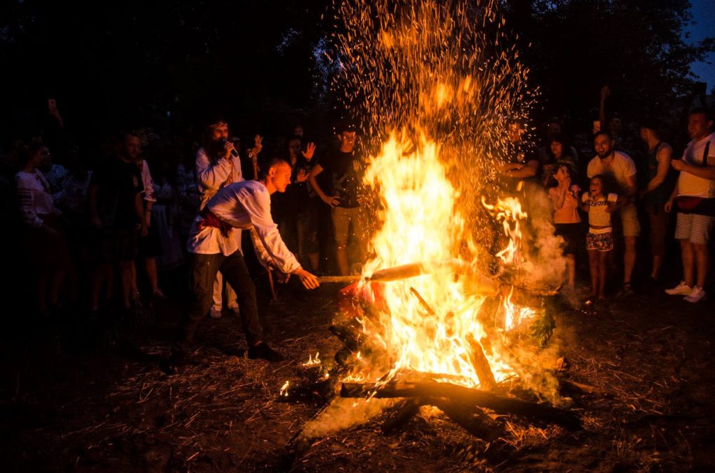 На берегу Днепра горожане принимали участие в настоящих народных гуляниях: плетению венков, прыжках через костер, танцах, играх и народных обрядах.