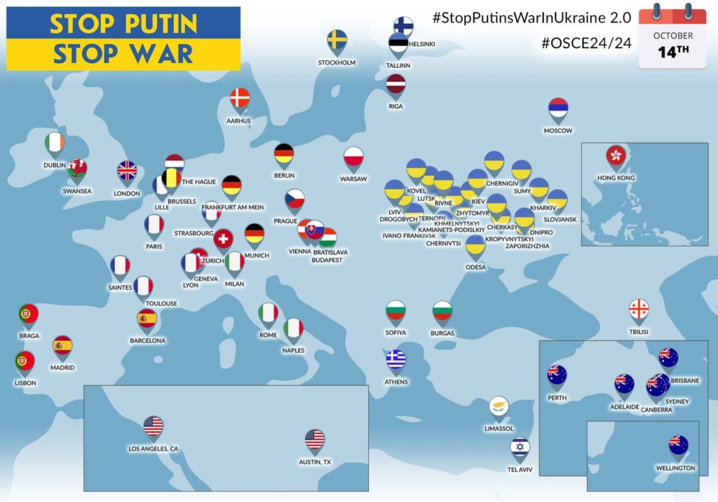 Завтра, 14 октября, во многих странах мира состоятся общественные акции в поддержку Украины под лозунгом “Стоп Путин! Стоп война!”
