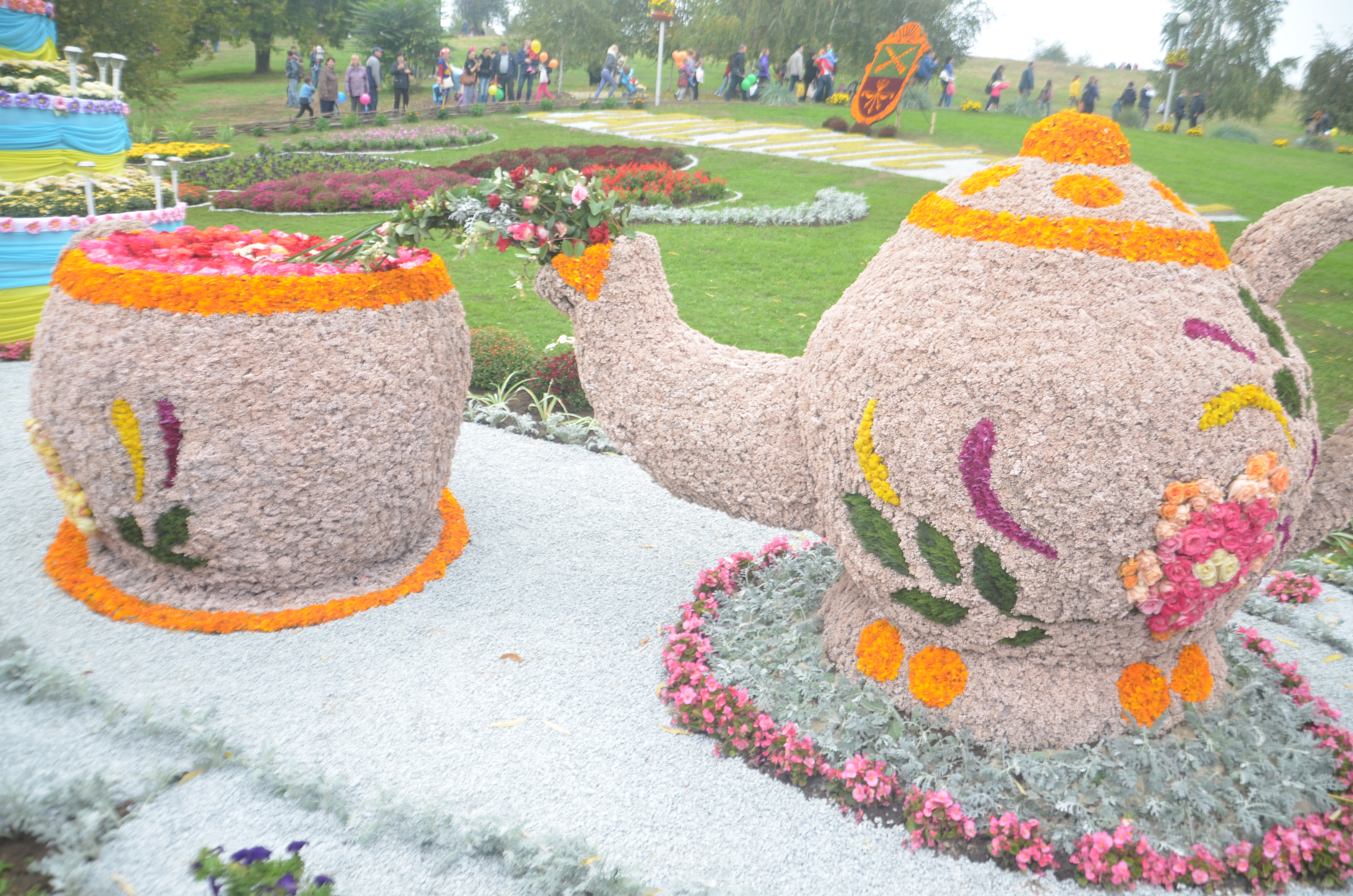 Запорожцы были приятно удивлены необычными цветочными композициями в виде огромного торта, сердца, куклы барби, смешариков, бегемотика и львенка. Но, пожалуй, наиболее внушительной и оригинальной оказалась миниатюра «Запорожской сечи». Очень кропотливая работа вознаграждена похвалой от горожан.