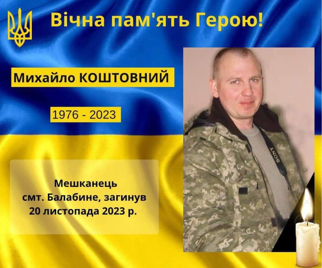 Через російське вторгнення загинув мешканець селища міського типу Балабине Запорізької області Михайло Коштовний.