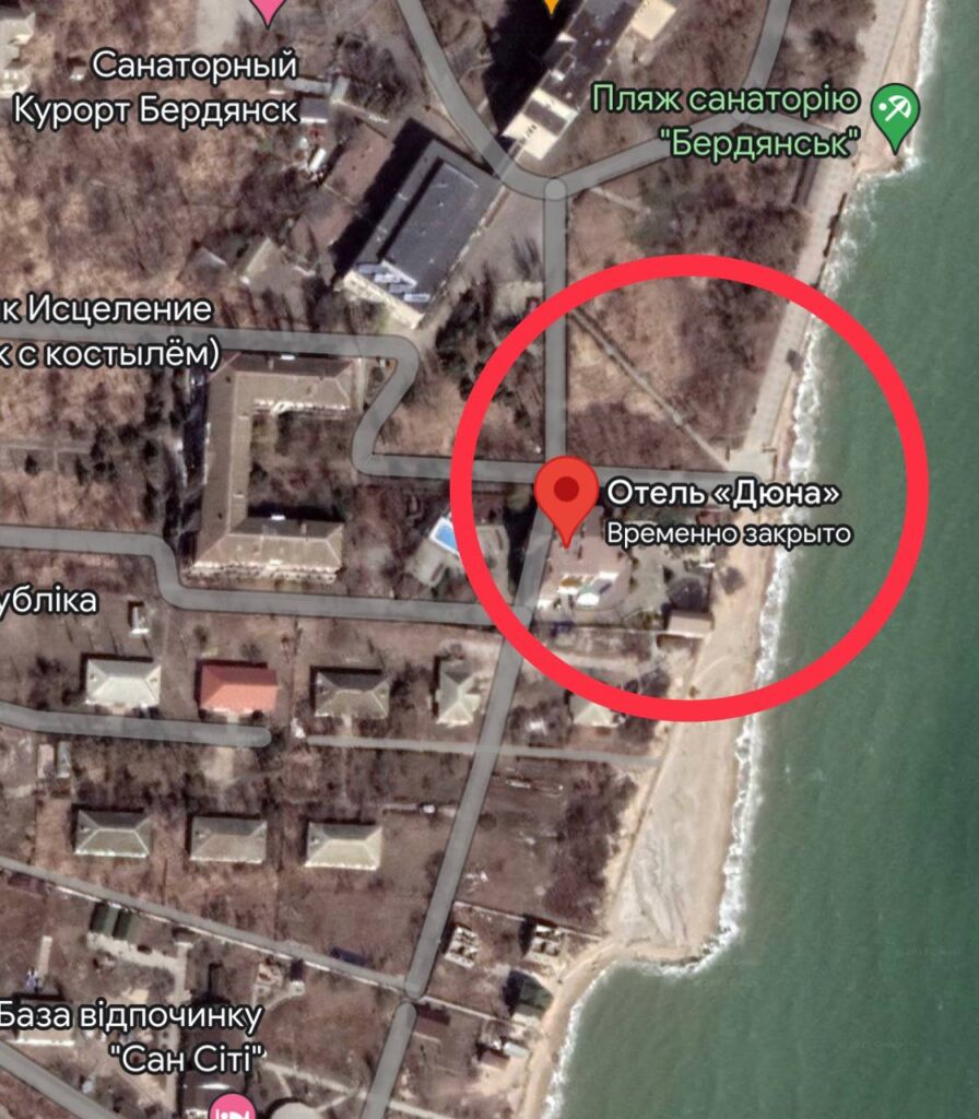 «Є влучання по готелю «Дюна», де жило військове керівництво окупантів. Будівлю фактично зрівняли з землею. Зараз там розбирають завали. В тому напрямку поїхало багато машин «швидкої допомоги»», — йдеться у повідомленні.