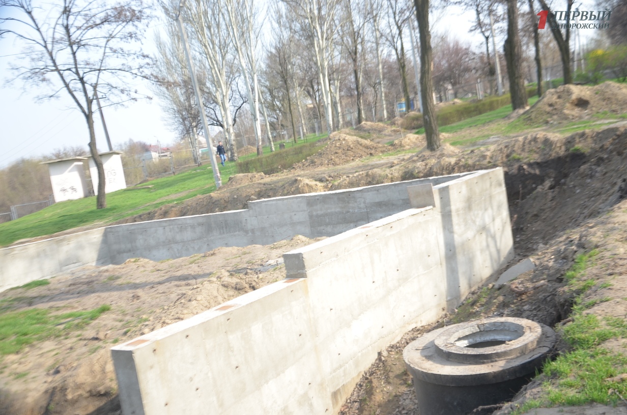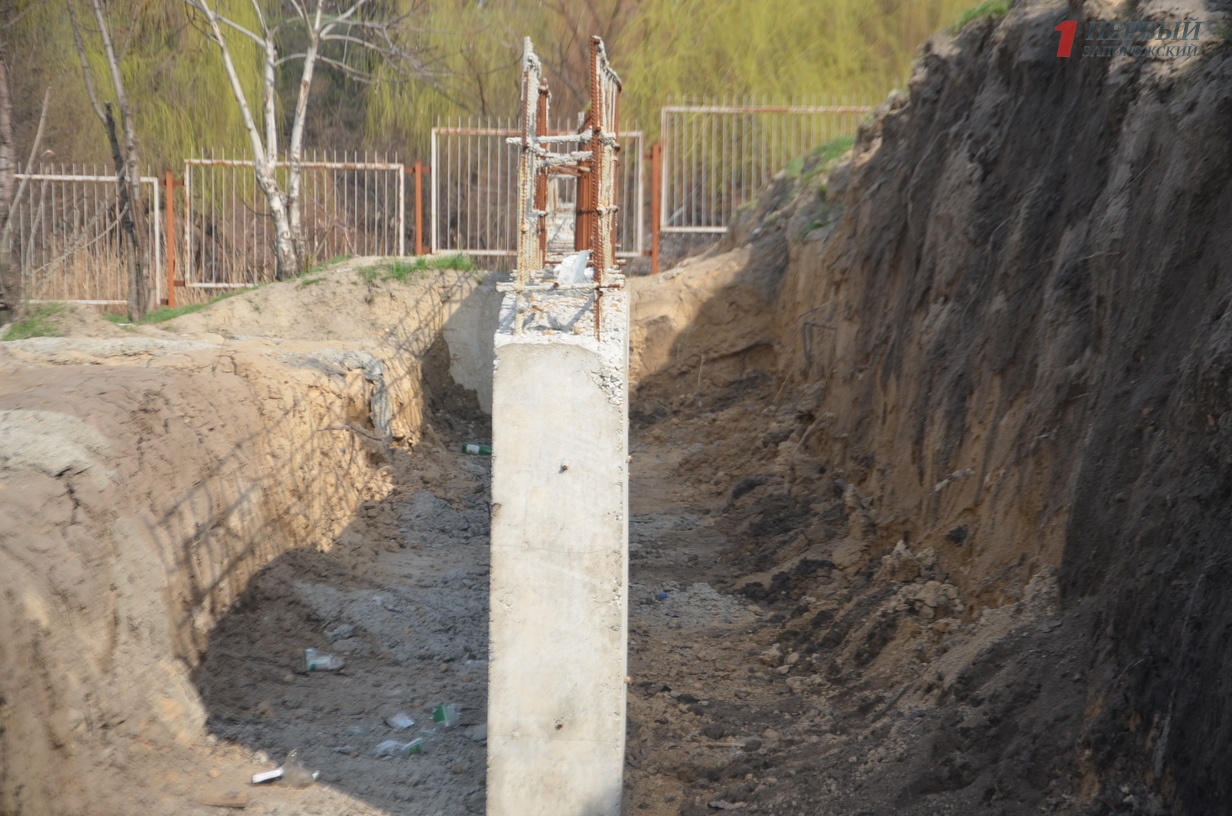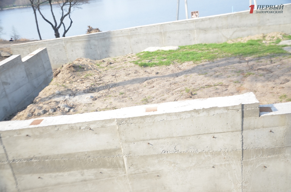 В настоящий момент на объекте отсутствуют строители и техника. Около входа на пляж посетителей радужно встречают перерытые котлованы, площадка с забетонированным фундаментом, в которую можно провалиться и металлические конструкции незавершенной подпорной стены.